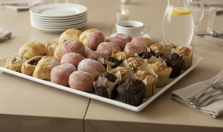 Platter Includes 12 X Cocktail Berry filled donuts 12 X Cocktail Danishes 12 X Cocktail Muffins
