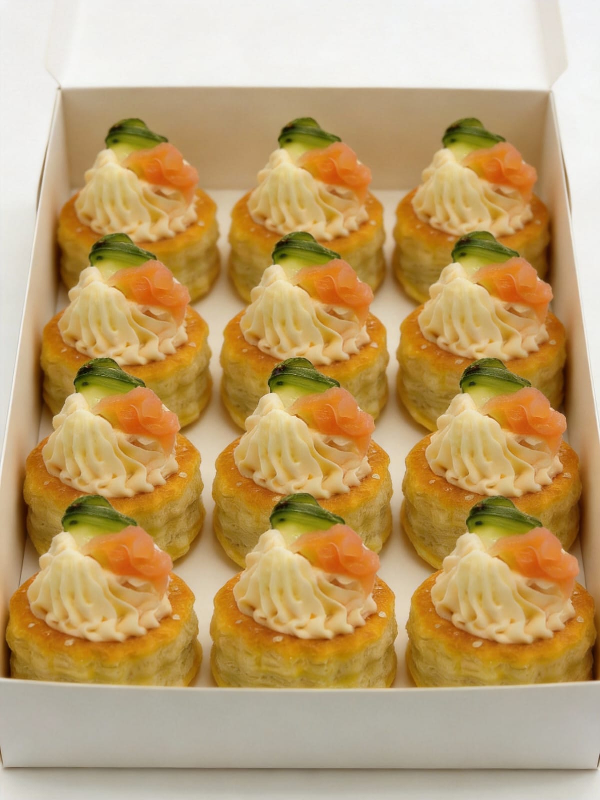 Box of 12 X Creamy soft salmon filling in golden flaky puff pastry