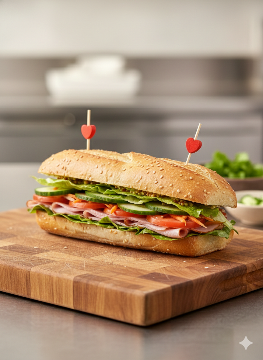 Baguette roll with chefs selection of our fillings served on a platter to share.